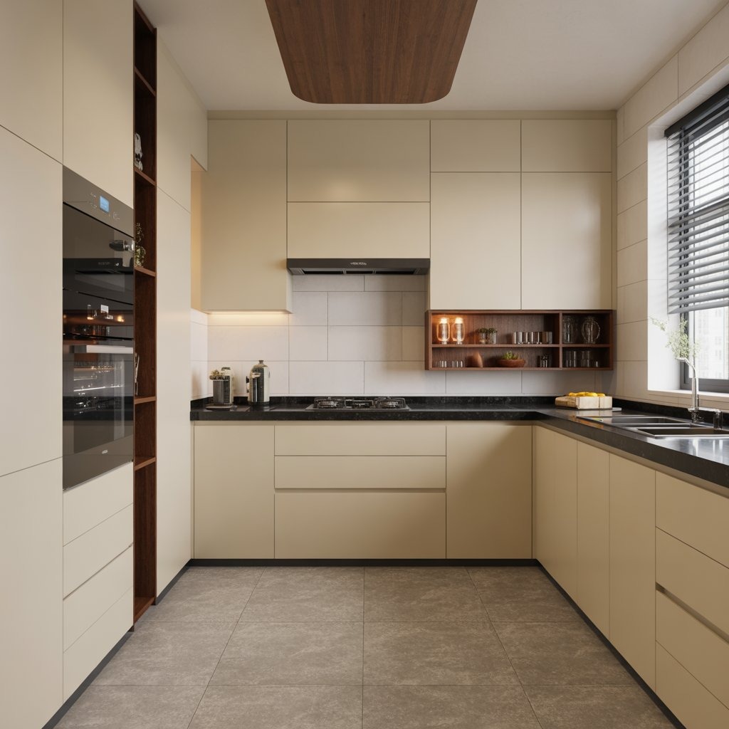 Ergonomically planned modular kitchens with premium fittings and smart storage.